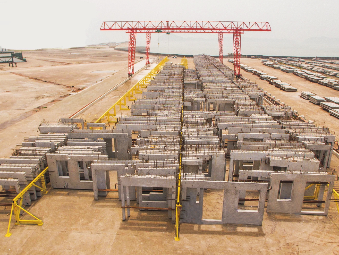 公司位于溫嶺東海之濱,松門鎮龍擔嶼裝配式建筑工業(yè)化科技產業(yè)園區(qū)內。園區(qū)總占地面積700余畝,其中裝配式PC構件生產占地200余畝,擁有30000㎡工業(yè)廠房和150畝構件堆場,以及25000㎡的辦公、住宿、食堂、娛樂場所,投入國內先進的自動化環(huán)形流水生產線1條,固定模臺生產線4條,規(guī)劃年產預制構件約10萬立方砼,可生產疊合樓板、樓梯、內外墻板、梁柱、陽臺、空調板等不同類型的構件。